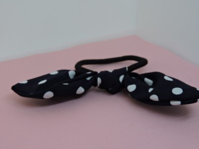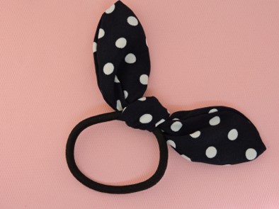 Haarelastiek met oortjes donkerblauw met witte stippen
