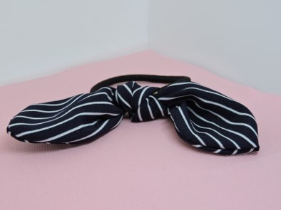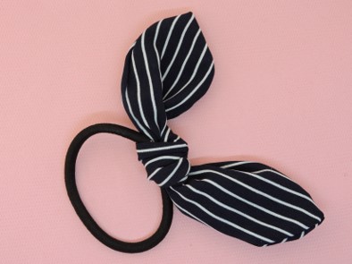 Haarelastiek met oortjes. Donkerblauw met witte strepen.