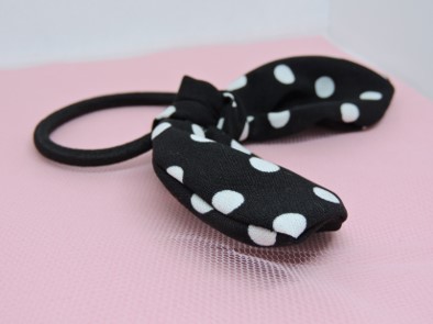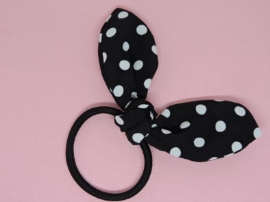 Haarelastiek met oortjes zwart met witte stippen
