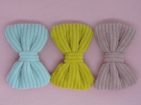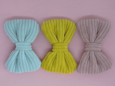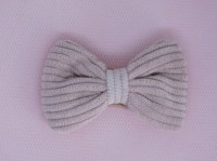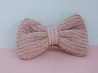 Roze strikje van ribstof. Er zit een klik-klak speldje in om het in de haartjes te klemmen
